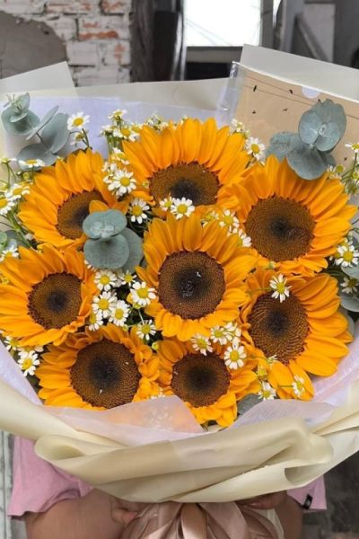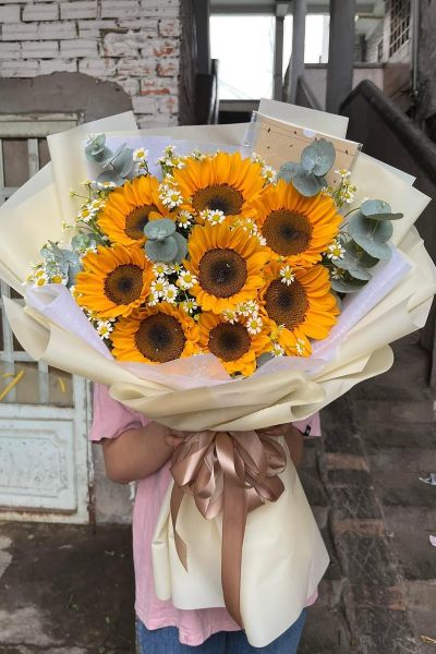 - Ngoại kiều bó dài, bạn có thể chọn mẫu bó hoa hướng dương tròn