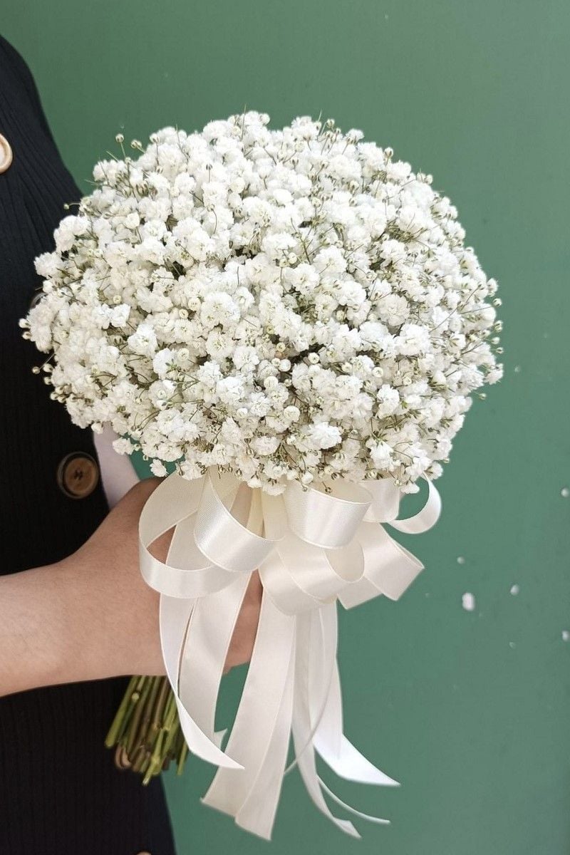 - Bó hoa cưới đặc biệt chỉ có hoa bi trắng