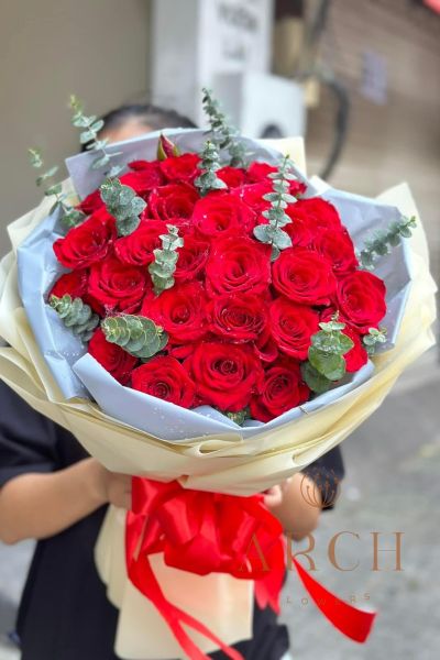 - Số lượng hoa: size vừa từ 19-21 bông, lá bạc thơm, size to 25-28 bông hoa hồng
