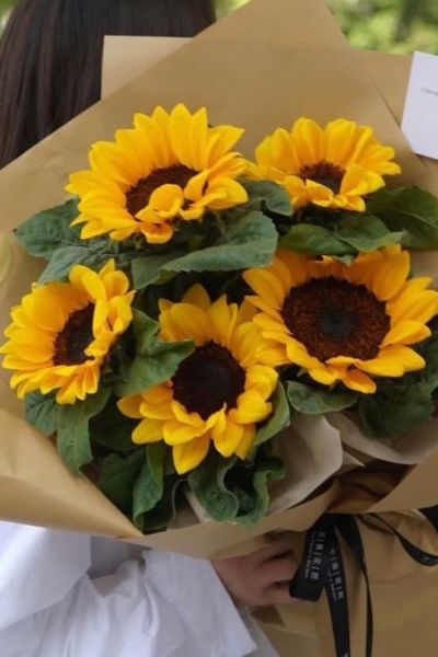 - Ngoại kiều bó dài, bạn có thể chọn mẫu bó hoa hướng dương tròn