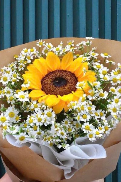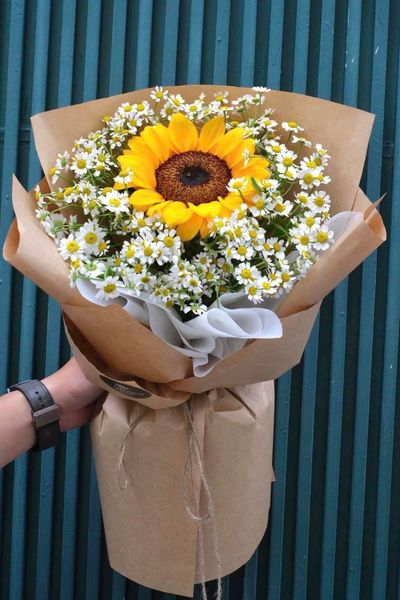 - Sự kết hợp này tạo nên một bó hoa tươi sáng và bắt mắt, mang lại cảm giác tươi mới và tràn đầy năng lượng. Những bông hướng dương lớn thường được đặt ở trung tâm, trong khi các bông cúc Tana nhẹ nhàng điểm xuyết xung quanh, tạo nên sự cân đối và thu hút ánh nhìn. Các cành lá xanh tươi từ hoa dương xỉ hoặc bạch đàn được thêm vào để làm nổi bật sắc vàng và trắng, mang đến sự tươi mát và tự nhiên.