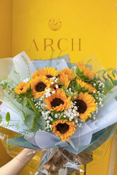 - Ngoại kiều bó dài, bạn có thể chọn mẫu bó hoa hướng dương tròn
