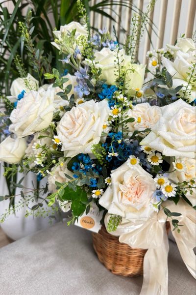 Phụ kiện: giỏ mây, nơ