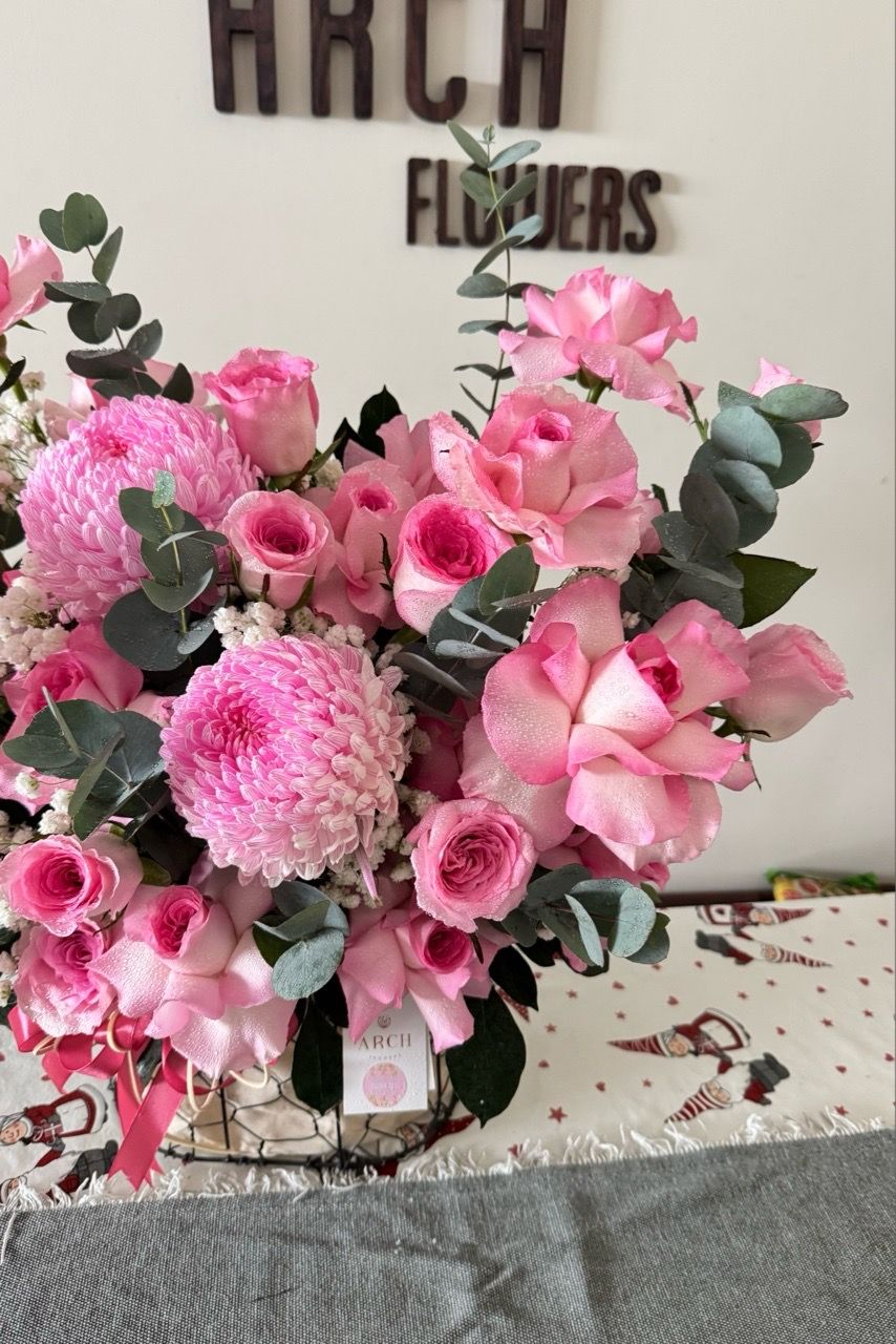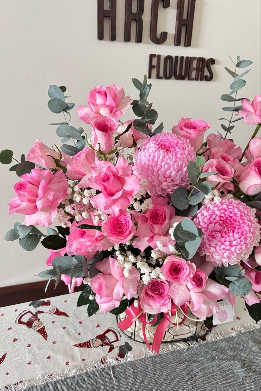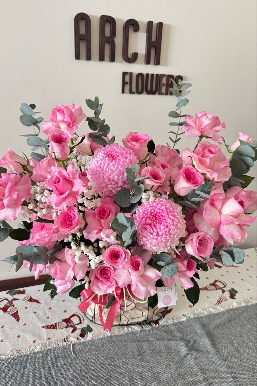 Giỏ Hoa Tone Hồng Nhẹ Nhàng