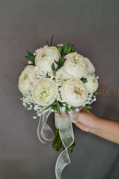 - Bó hoa gồm: hoa sen trắng, hoa bibi, các loại lá...