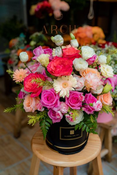 - Với tone cam hồng rực rỡ được thiết kế từ các loại hoa hồng khác nhau. Tạo nên bức tranh đầy màu sắc.