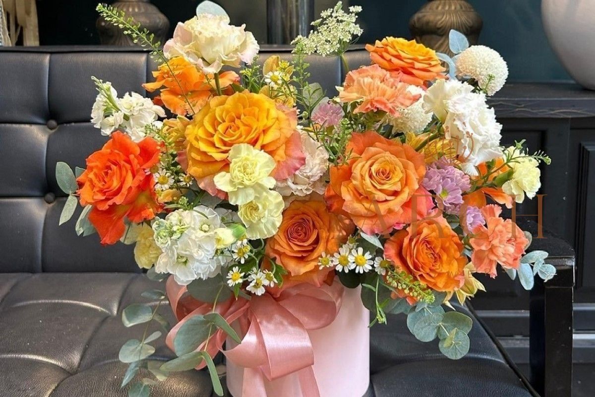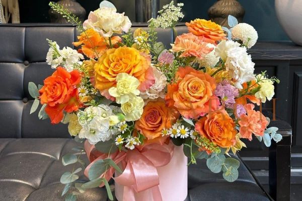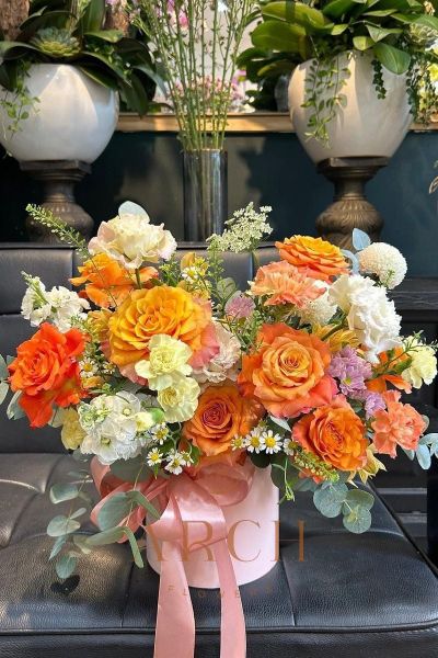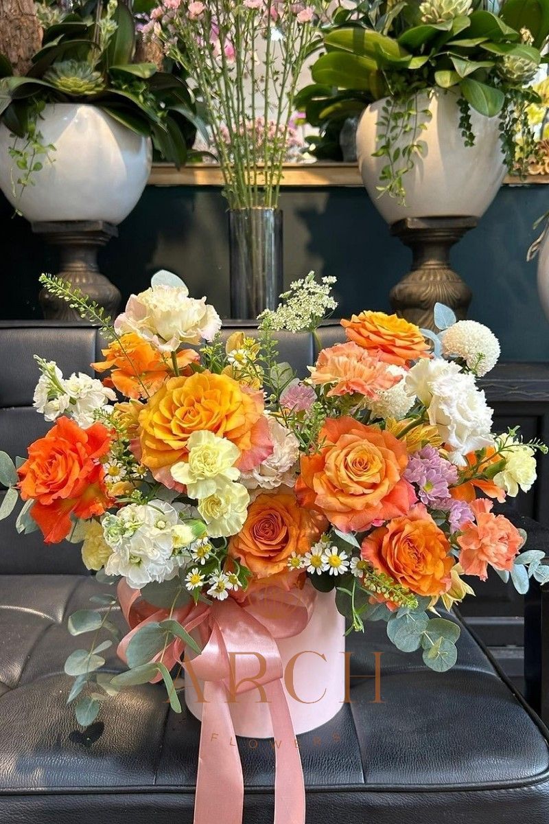 - Việc phối nhiều màu hoa vàng cam trên một hộp hoa giúp hộp hoa sang trọng, cao cấp, nổi bật.
