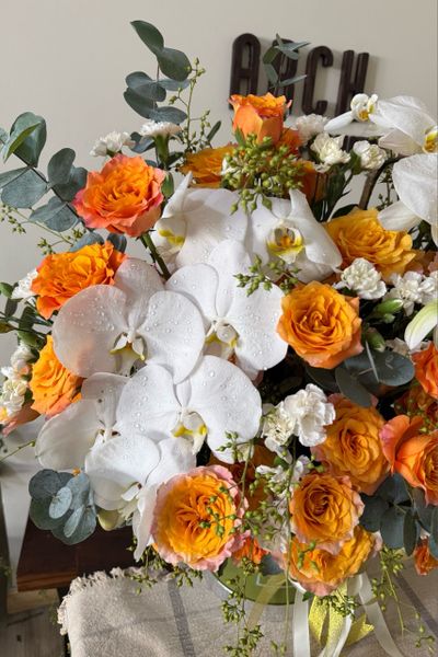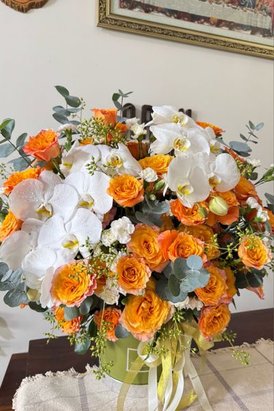 Size vừa: từ 30- 35 hoa hồng chính, 1 cành lan hồ điệp