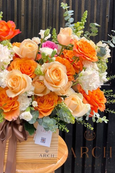 - Việc phối nhiều màu hoa vàng cam trên một hộp hoa giúp hộp hoa sang trọng, cao cấp, nổi bật.